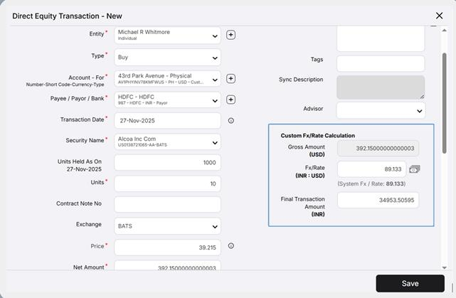 Capture the exact FX rate used by your custodian or bank to ensure every transaction reflects the true converted value.